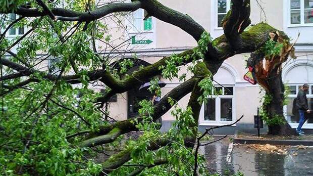 Дерево упало и оборвало провода линии электропередач в Подмосковье. Причиной стал шквалистый ветер.