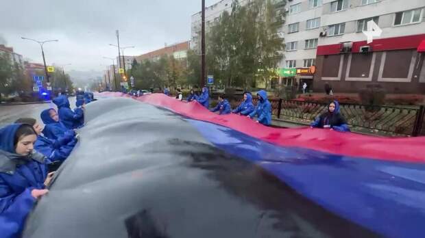 "Несмотря на погоду, проливной дождь, мы с командой "Молодой Гвардии" ... развернули 200-метровый флаг республики", – рассказал руководитель "Молодой гвардии" в ДНР Сергей Добровольский.