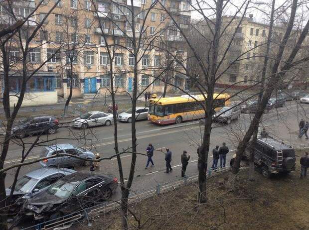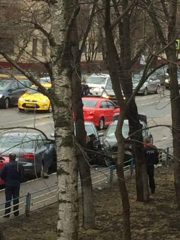 По меньшей мере шесть машин пострадало в результате массового ДТП на Нагорной улице в Москве. Об этом сообщают очевидцы.