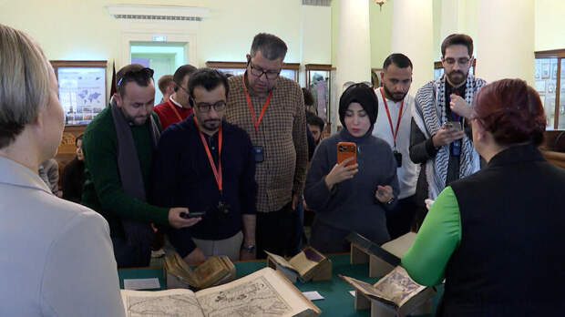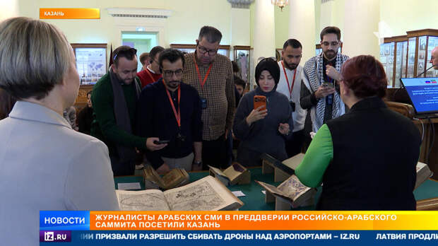 В Казань в преддверии первого в истории российско-арабского саммита приехала группа арабских журналистов. Это почти 70 корреспондентов и блогеров из 19 государств. Сегодня они посетили Музей Казанского университета – вуза, который знаменит, в том числе, тем, что там учился Владимир Ульянов. Гостям, среди прочего, показали уникальные средневековые рукописные Кораны, книги с изображениями Мекки и Каабы, карту Аравийского полуострова.