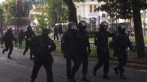 На кадрах видно, как омоновцы подходят к людям и распыляют им в лица перцовый газ из баллончика.