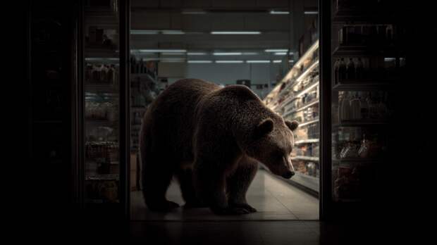 Медведь сначала атаковал покупателя на парковке, а затем ворвался в торговый зал. По словам менеджера магазина, животное не искало пищу, а пыталось найти выход, попутно разрушая витрины с рыбой и суши.