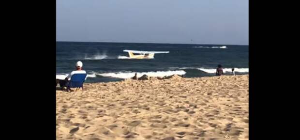 Легкомоторный самолет совершил аварийную посадку в океан на побережье города Оушен-Сити в США.