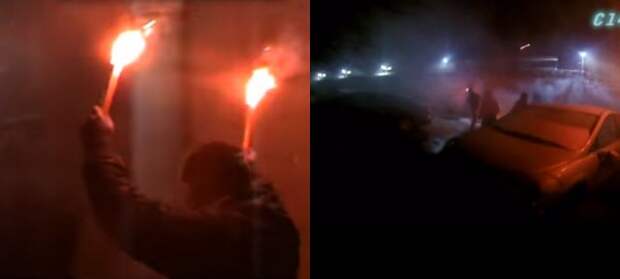 Около десяти хулиганов были одеты в темную одежду, а в руках они держали файеры. Они начали бить припаркованные машины, в результате чего были повреждены три автомобиля.