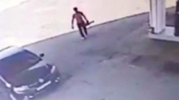На автозаправке что-то не поделили двое мужчин. Один из оппонентов, видимо, решил, что сможет отстоять свою точку зрения только с помощью бензопилы. Он завел инструмент и начал гоняться за противником.
