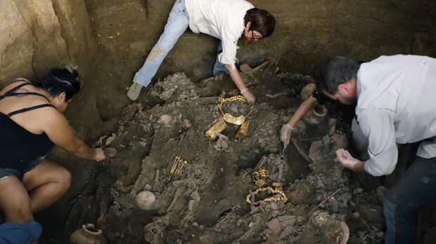 Исследователи предполагают: это могла быть жена знатного покойника. Вероятно, ее принесли в жертву после смерти мужа. На территории Панамы археологи уже находили подобные захоронения. Но что означает странное положение тел мужчины и женщины?
