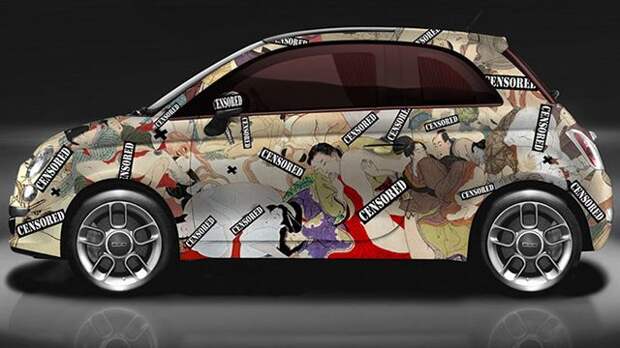 Так, художники украсили кузов хэтчбека FIAT 500 картинками из Камасутры.