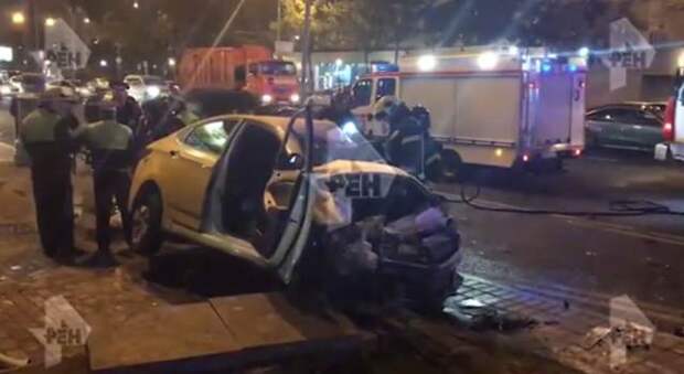 По данным РЕН ТВ, иномарка, в которой находилось три человека, столкнулась с двумя автомобилями, в том числе такси. В результате ЧП погибла пассажирка такси.