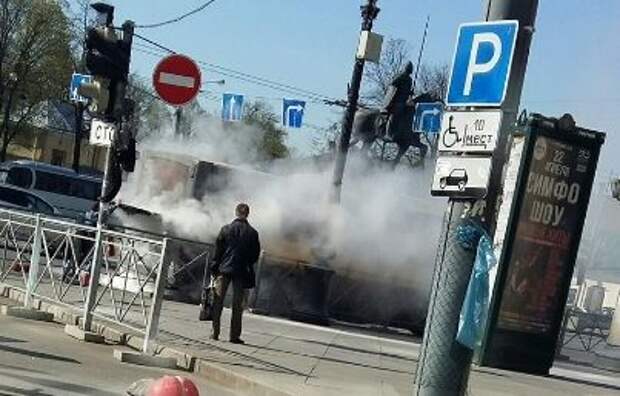 На площади Александра Невского в Петербурге загорелся автобус. Причины возгорания пока не установлены, сообщают участники группы "ДТП и ЧП / Санкт-Петербург".