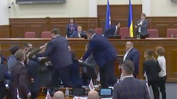 Мэр Киева Виталий Кличко пытался разнять представителей фракций, которые начали драться во время заседания в Киевсовете.