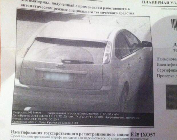 Местные СМИ раскрыли загадку сверхзвуковой скорости в 1418 километров в час, с которой водитель промчался под дорожной камерой в Орле. По их данным, в "письме счастья" потерялась запятая.