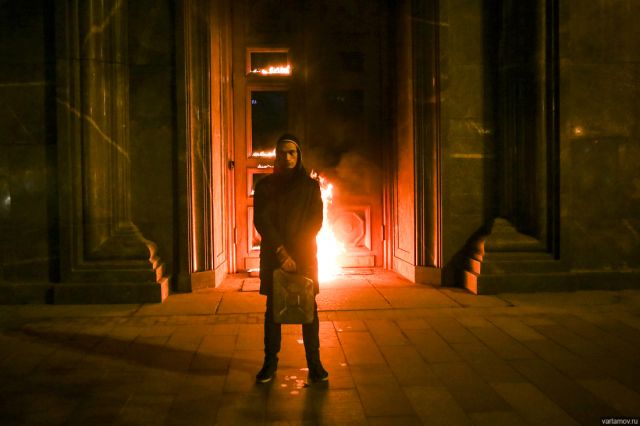 Ранее в Сети появились фото с места происшествия. На них было видно, что Павленский поджег здание банка.