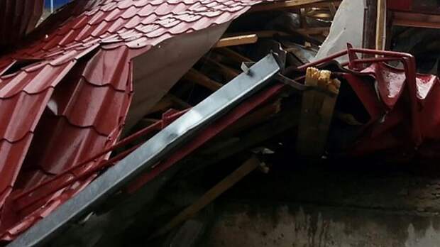 В Кропоткине сильный ветер снес с офисного здания крышу. Кровля рухнула на четыре машины, стоявшие на парковке рядом с бизнес-центром.