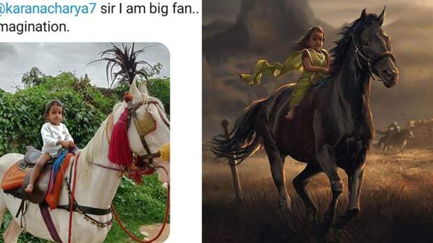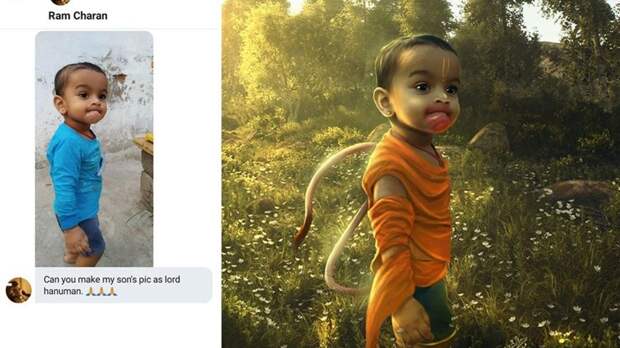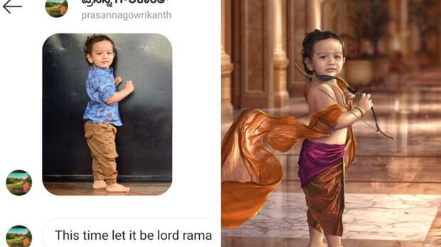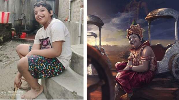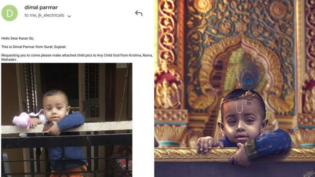 Каран делится результатами своей работы в Instagram. Особенное обсуждение среди интернет-пользователей вызвала фотография маленького мальчика в образе Кришны.