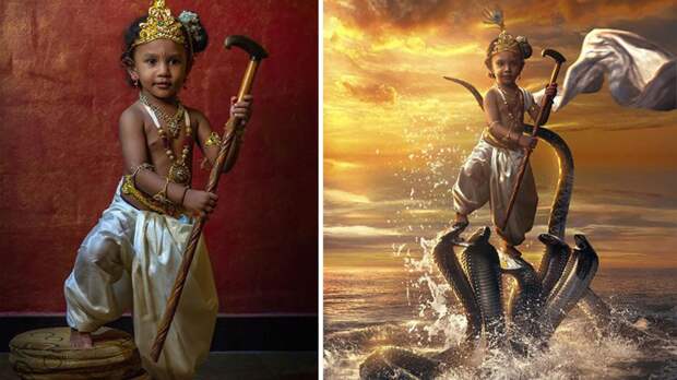 В Сети прославился индийский фотохудожник и графический дизайнер Каран Ачарья, который способен превращать обычные снимки в изображения волшебных миров, а людей – в сказочных существ. На его творчество обратил внимание портал Bored Panda.