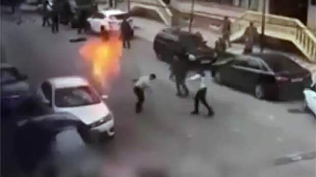 В Дагестане в легковушке на ходу сдетонировал баллон с сжиженным газом. Машина вспыхнула на глазах у десятков прохожих.