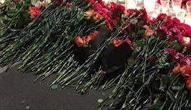 Рядом с цветами лежит записка со словами: "Помним. Скорбим".
