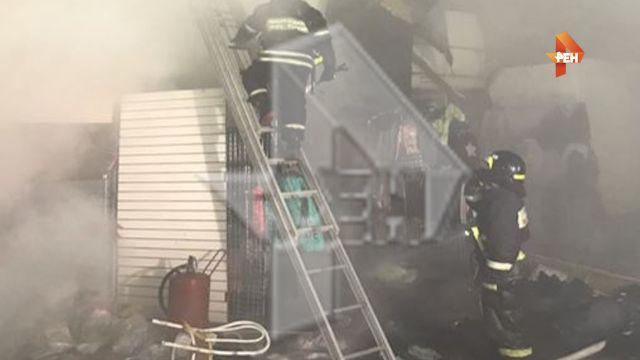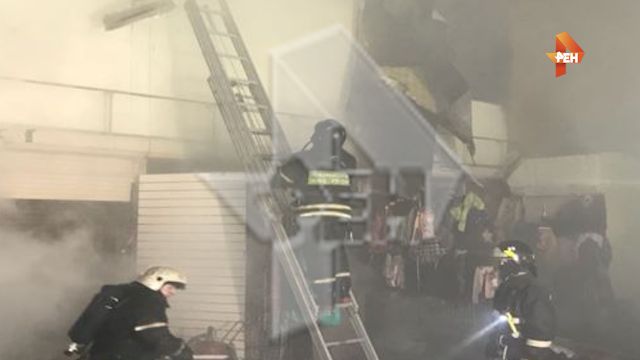 Пожарные работают на месте возгорания на рынке "Садовод". По последним данным, площадь возгорания составляет 300 квадратных метров.