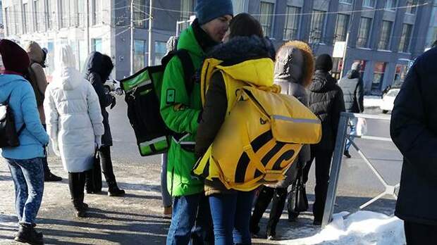 Как сообщает "Лента.ру", фотография была сделана в Новосибирске. На фото запечатлены сотрудник Delivery Club и сотрудница "Яндекс.Еды". Они стоят и обнимаются.
