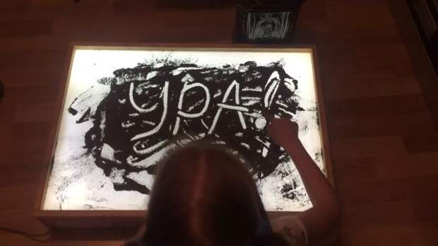 10-летняя школьница Аня рассказала историю своей семьи на стекле. В популярной сегодня технике рисования вместо песка девочка использовала прах своего прадедушки.