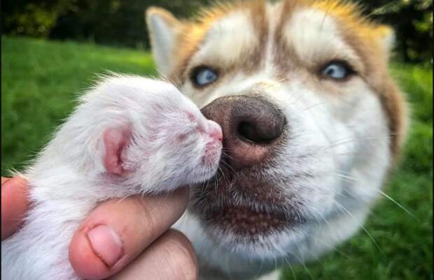 Два года назад Баннер нашел в канаве новорожденного котенка. Хозяйка забрала его в дом, и теперь кот стал лучшим другом хаски.