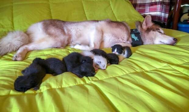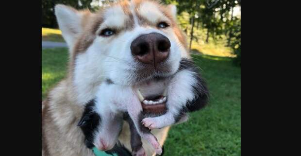 Добродушный хаски очень заботлив по отношению к своей хозяйке Уитни Брайли.