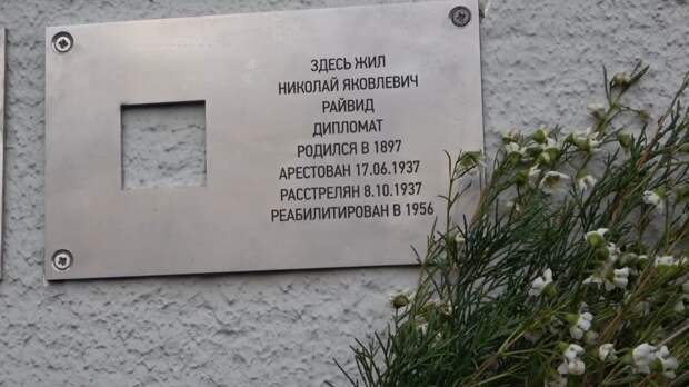 Небольшая табличка на одном из домов в центре Москвы установлена, как уверяют организаторы ее появления, в память о репрессированном дипломате Николае Райвиде. Согласно одному документу, репрессированный Райвид должен был организовать "красный террор" в отношении тамбовских крестьян. В другом приказе, где он же значится соавтором, требовалось брать в заложники юношей и девушек за контрреволюционную деятельность.