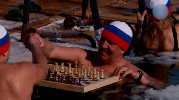 Тюменские моржи решили продемонстрировать не только силу духа, но и свой ум. Они провели соревнование по шахматам, находясь в ледяной воде. 16 человек показали всем, что такое сибирское здоровье, а заодно проверили, кто из них лучше выучил шахматные дебюты. Впрочем, цель у этого соревнования была не поставить рекорд, а привлечь как можно больше людей к здоровому образу жизни.