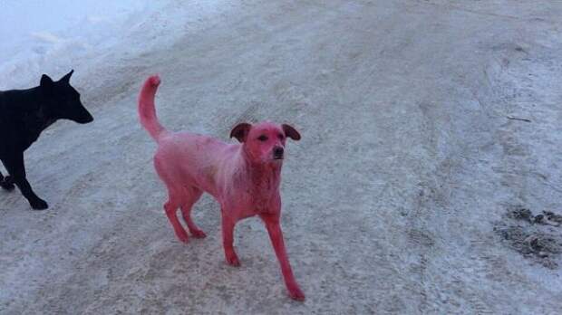 Ижевским волонтерам удалось отловить собаку, выкрашенную хулиганами в розовый цвет. Собаку отвезли в полицию и к ветеринару.