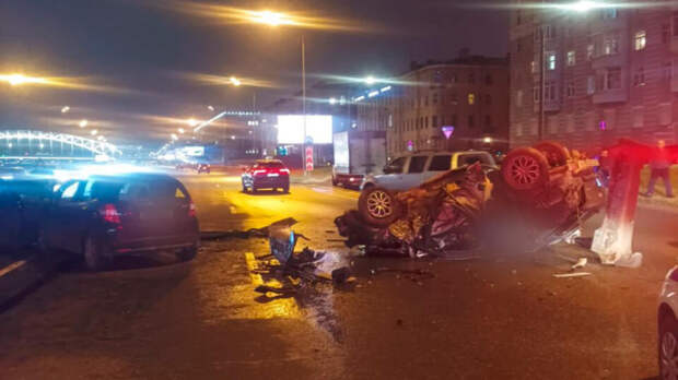 На кадрах с места аварии видно, что автомобили получили серьезные повреждения. По дороге разбросаны осколки и небольшие части от машин. Одно из транспортных средств перевернуто и лежит крышей вниз. Место аварии заняло три проезжих полосы.