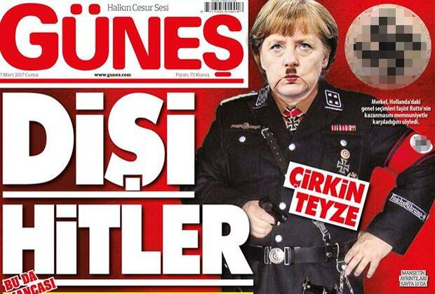 Турецкая газета изобразила Меркель в форме СС и с усиками Гитлера. Изображение было опубликовано на сайте издания.