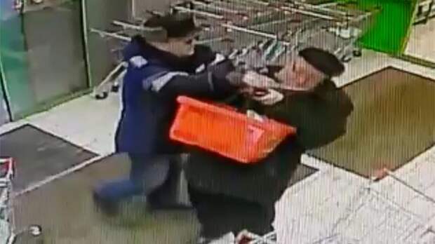 Один из покупателей едва не зарезал пожилого мужчину за то, что тот не пропустил его в очереди. На кадрах видно, что дебошир бросается на несчастного и бьет ножом в шею. Пострадавший роняет корзинку с продуктами, хватается за горло.
