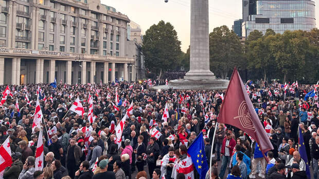 Ранее сообщалось, что митингующие в грузинской столице бросают камни в президентский дворец и запускают пиротехнику в полицейских.