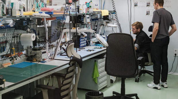 "Производим настройку платы анализа движения и платы углового датчика. Это первоначальная настройка перед окончательной сборкой коленного модуля", – сообщил техник участка сборки коленного модуля Александр Черкасов.