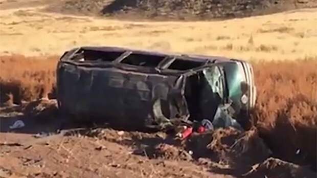 В Туве микроавтобус опрокинулся после того, как водитель потерял управление из-за лопнувшего колеса.