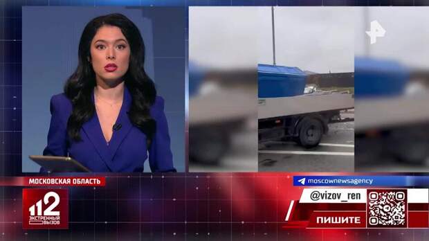 В Подмосковье водитель каршеринга попал в аварию с туалетом. На дороге он протаранил грузовик, который перевозил в кузове синие туалетные кабинки.
