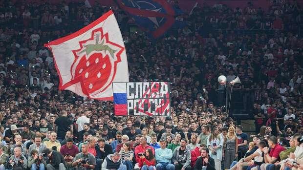Спортивная Европа вопреки бюрократической ищет вдохновение в русских мотивах. Мощным перфомансом в поддержку России начался баскетбольный матч Евролиги в Белграде.
