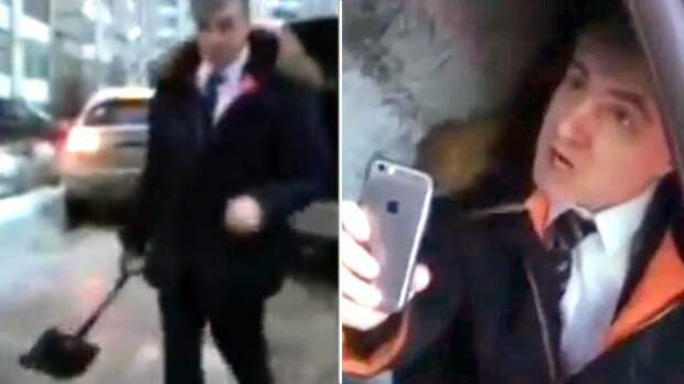 На кадрах депутат категорически отрицает свою вину, после чего он и его оппонентка обмениваются оскорблениями.Автоледи утверждает, что чиновник поцарапал ее автомобиль. На просьбу дождаться сотрудников ГИБДД мужчина ответил отказом. При этом он схватил лопату и выражался в адрес дамы нецензурной бранью.