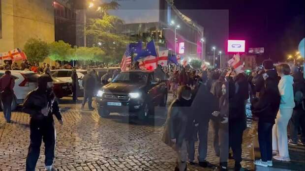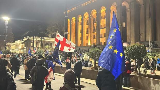 Грузинская оппозиция вышла с флагами Евросоюза на протесты в столице страны Тбилиси, соответствующий кадры оказались в распоряжении РЕН ТВ. Еще на акции появилась бывший президент Грузии Саломе Зурабишвили, сообщил журналист Георгий Джабишвили.