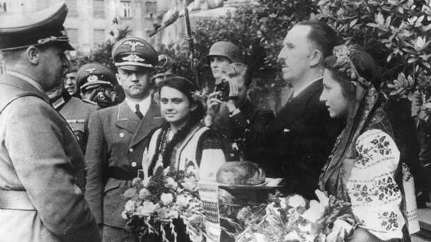 Ганс Франк принимает хлеб-соль от мэра Львова перед местным парламентом. Но оккупационный грабеж гитлеровцев, насилие и расстрелы, ошеломительные зверства бандеровцев отвратили симпатии украинского народа от оккупантов и националистов. Потому с облегчением и благодарностью было встречено окончательное уничтожение бандеровских банд. Нацистского партизанского сопротивления без народной поддержки хватило ненадолго.