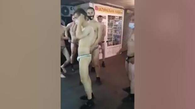 Несколько мужчин практически голышом пробежали по центру украинской столицы. Забег в стрингах прошел по подземным переходам в центре Киева. Его сняли на видео очевидцы.
