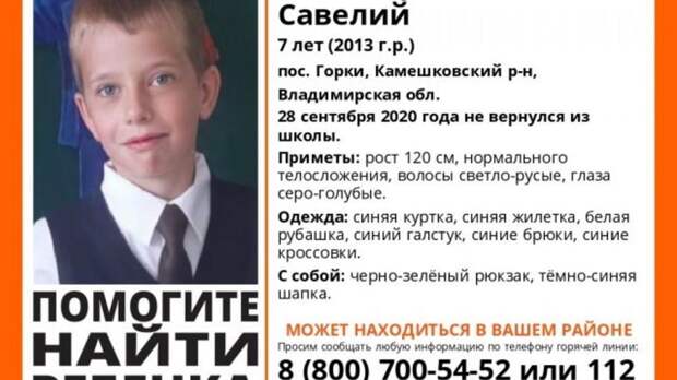 Полиция объявила о вознаграждении в 1 млн рублей за информацию о пропавшем во Владимирской области 7-летнем Савелии Роговцеве, как сообщается на сайте МВД РФ.