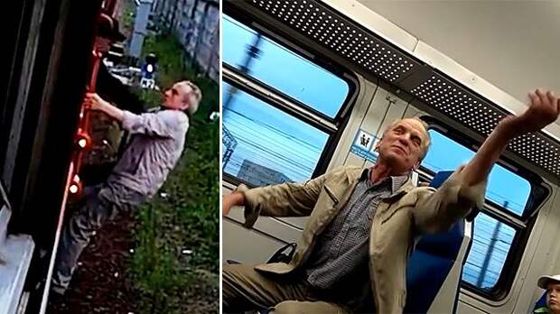 В Сети появилось видео, на котором запечатлен "дедушка-зацепер". Охрана, которая сопровождала контролеров электрички, заметила, что мужчина зацепился за вагон.