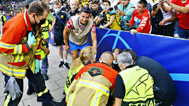 twitter.com/B24PT Роналду вместе с врачами подошел к девушке, чтобы убедиться, что с ней все в порядке.
