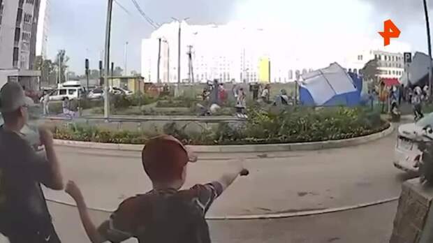 На кадрах, опубликованных в социальных сетях, запечатлено, как конструкция не выдержала потоков ветра и была отброшена в сторону.