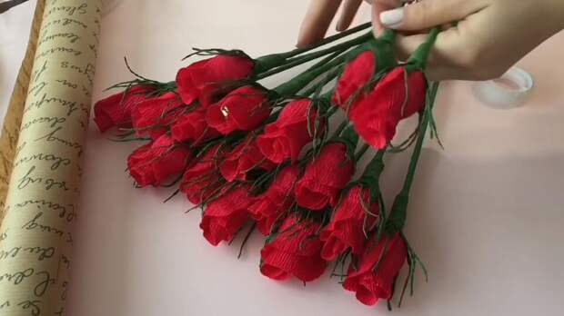 Кадр youtube.com Букет тюльпанов из конфет и проволоки