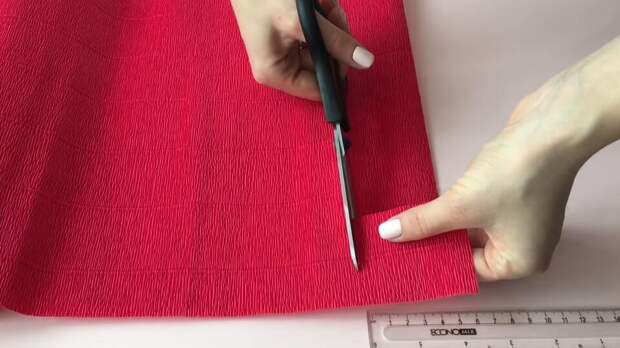 Вырезаем из гофрированной бумаги полоску с лепестками.
