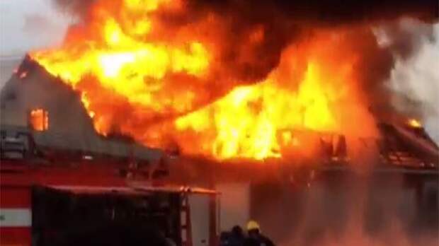 В Сети появилось видео крупного пожара в автосервисе в Люберцах.