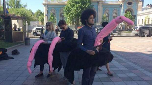 Активисты организаций "Реанимационный пакет реформ" и "Честно" под стенами Рады устроили "парад розовых страусов". Общественников возмутило то, что лишь у 2 из 15 членов ЦИК оказались действующие мандаты.