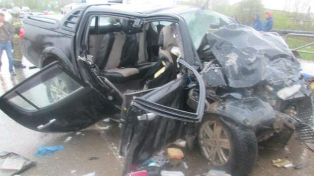 На опубликованных кадрах видно, что машина получила серьезные повреждения, а ее передняя часть превратилась в груду искореженного металла.В результате ДТП погибли водитель и два пассажира, находившиеся во внедорожнике. Кроме того, пострадали два человека, находившиеся в иномарке, а также двое пассажиров автобуса.